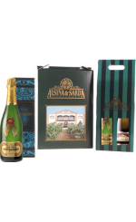 Caja madera barnizada con 6 botellas cava